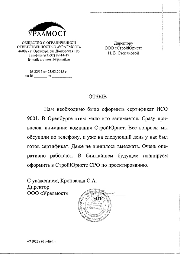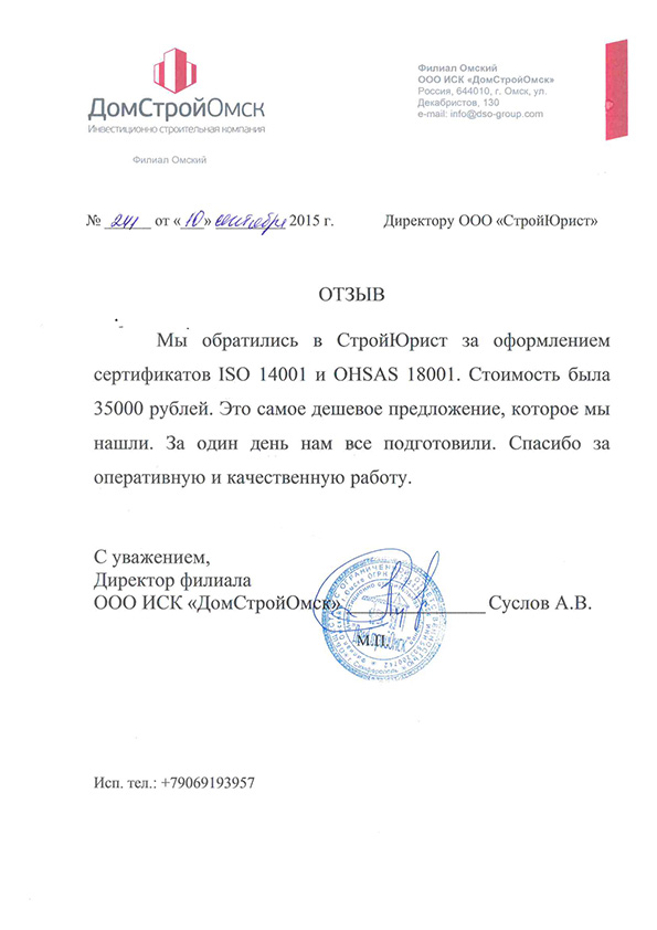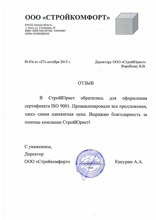 Отзывы клиентов "СтройЮрист" по ISO в Пскове