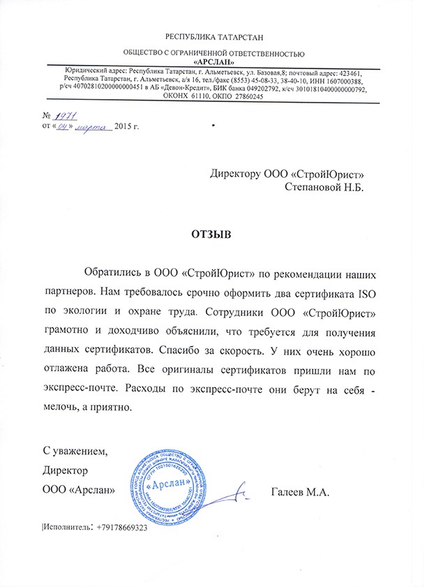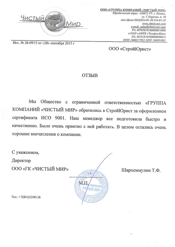 Отзывы клиентов "СтройЮрист" по ISO в Пскове
