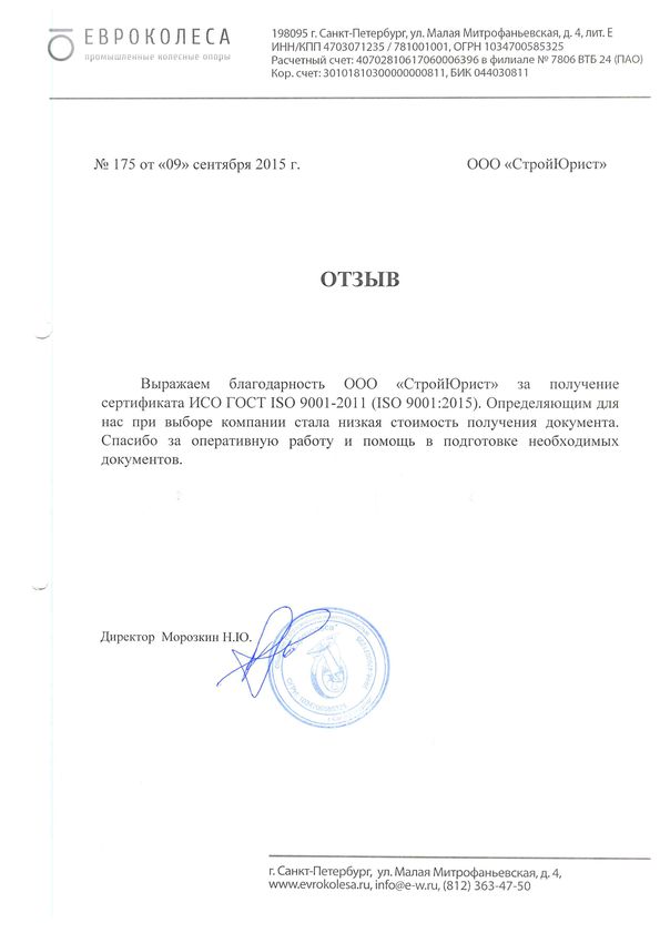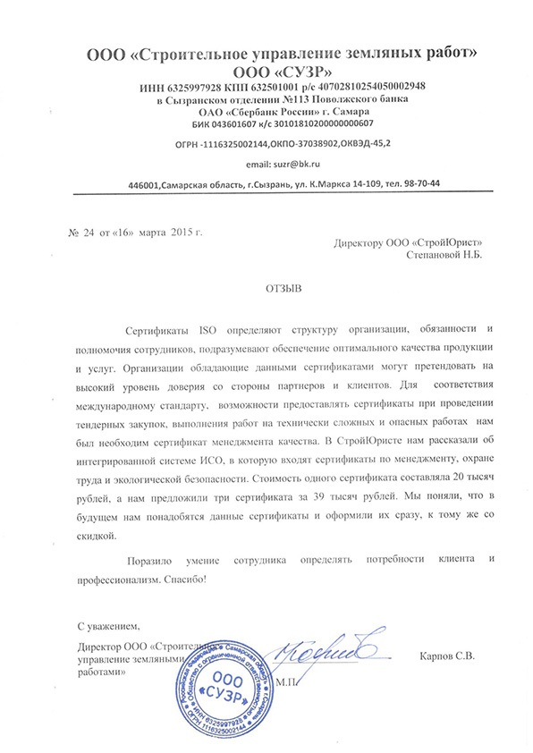 Отзывы клиентов "СтройЮрист" по ISO в Пскове