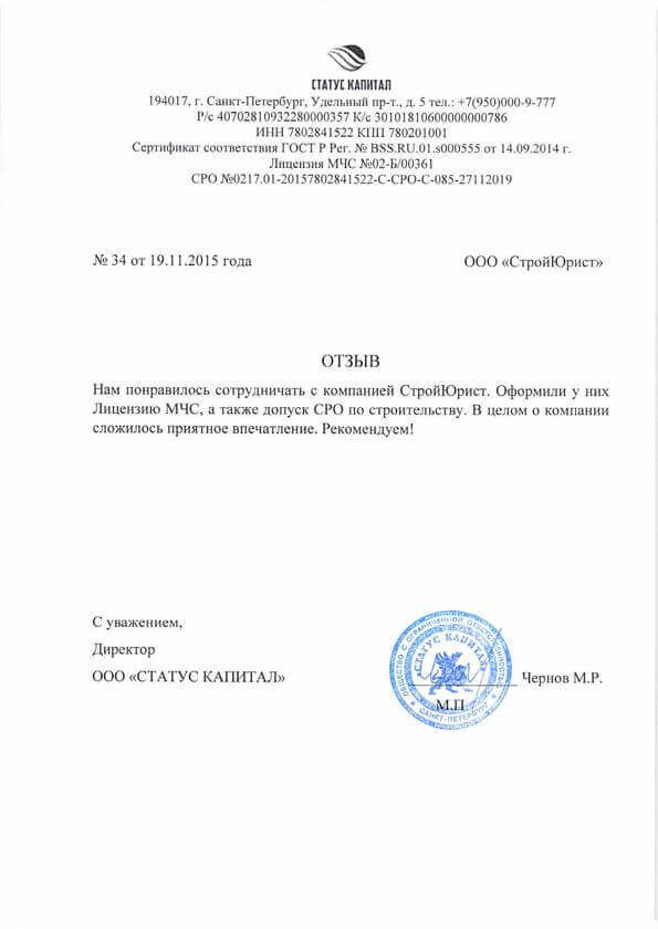 Отзывы клиентов "СтройЮрист" по лицензированию МЧС в Пскове