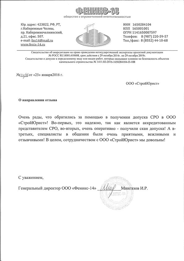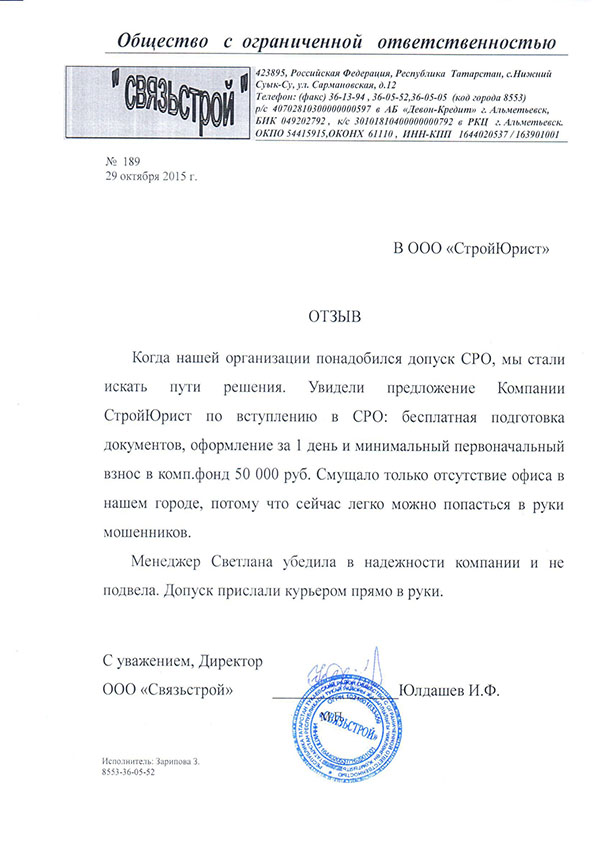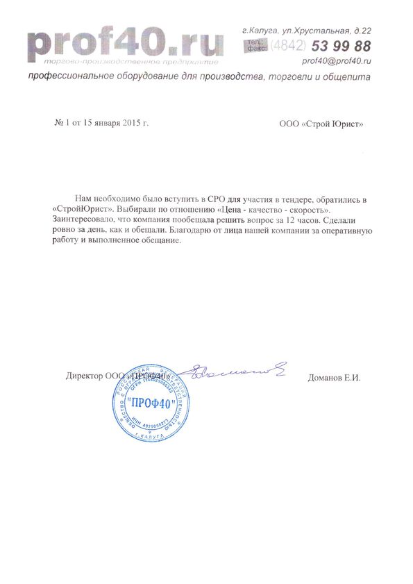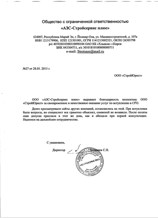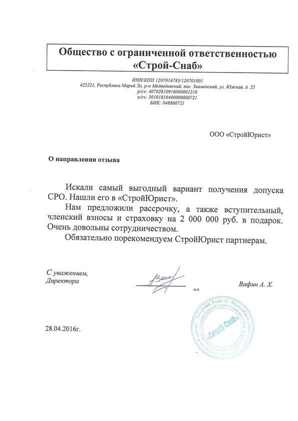 Отзывы клиентов "СтройЮрист" по вступлению в СРО в Пскове