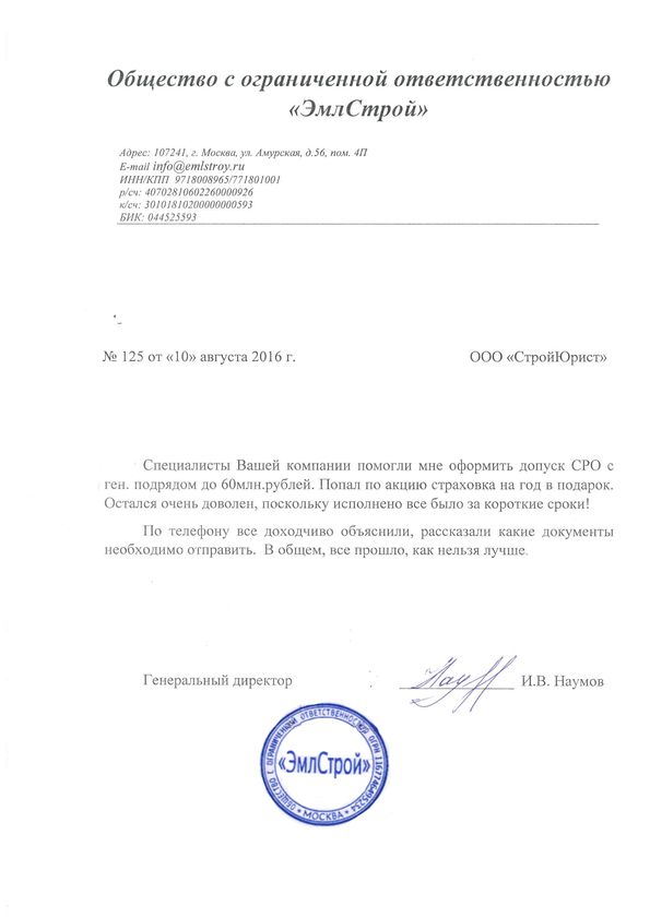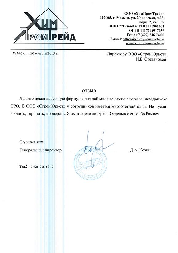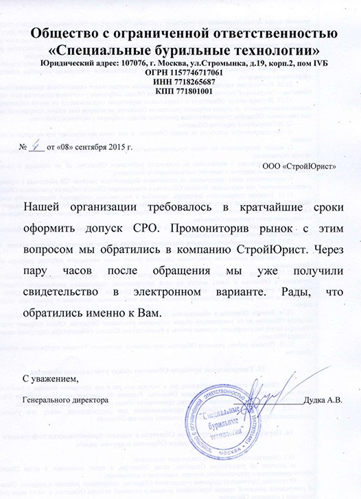 Отзывы клиентов "СтройЮрист" по вступлению в СРО в Пскове