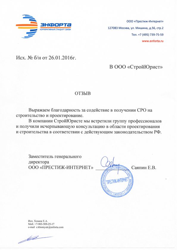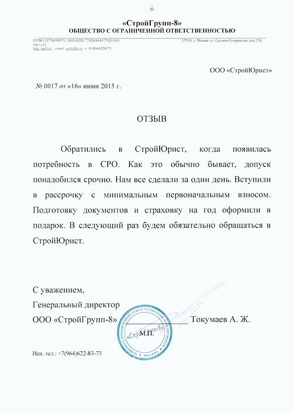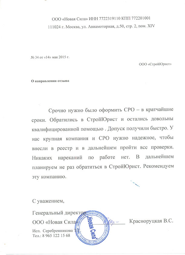 Отзывы клиентов "СтройЮрист" по вступлению в СРО в Пскове