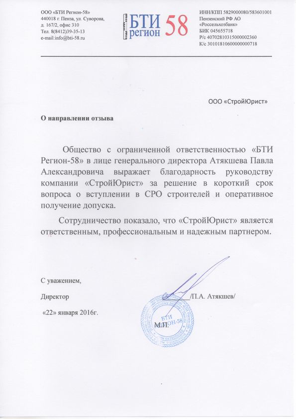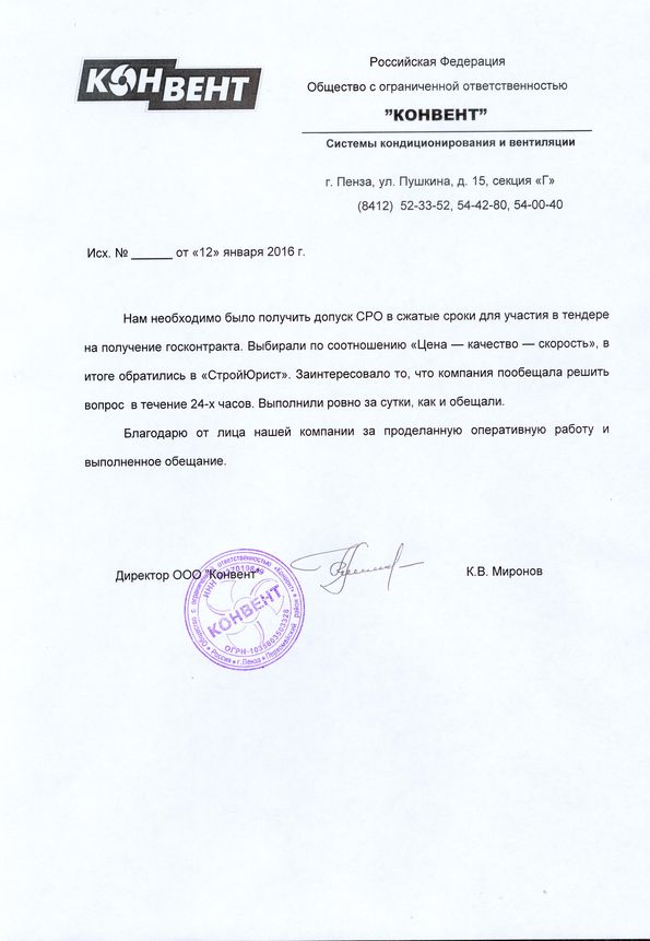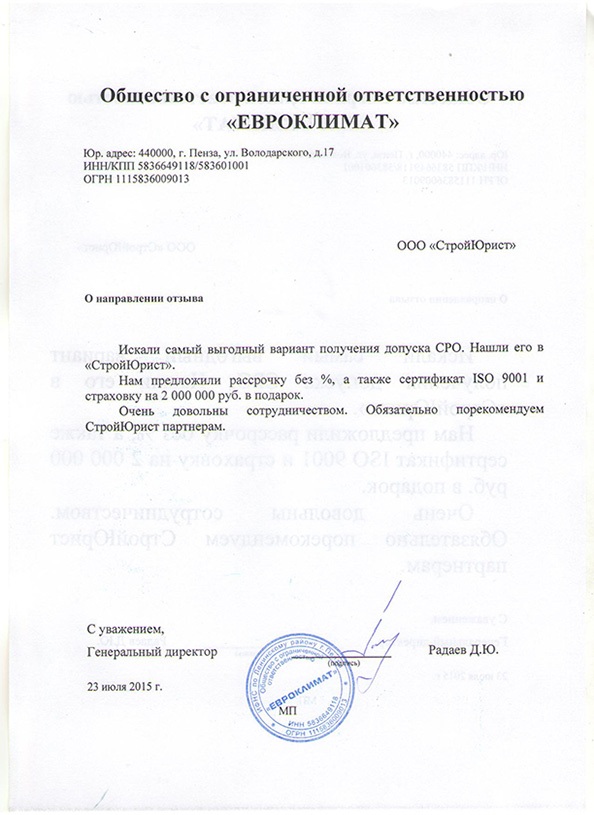 Отзывы клиентов "СтройЮрист" по вступлению в СРО в Пскове