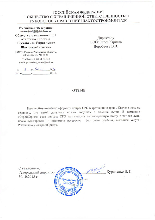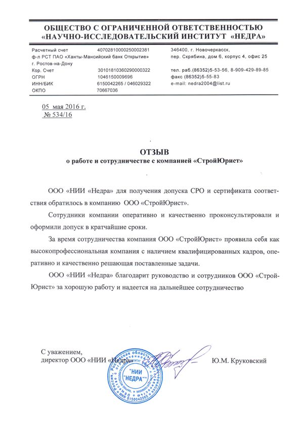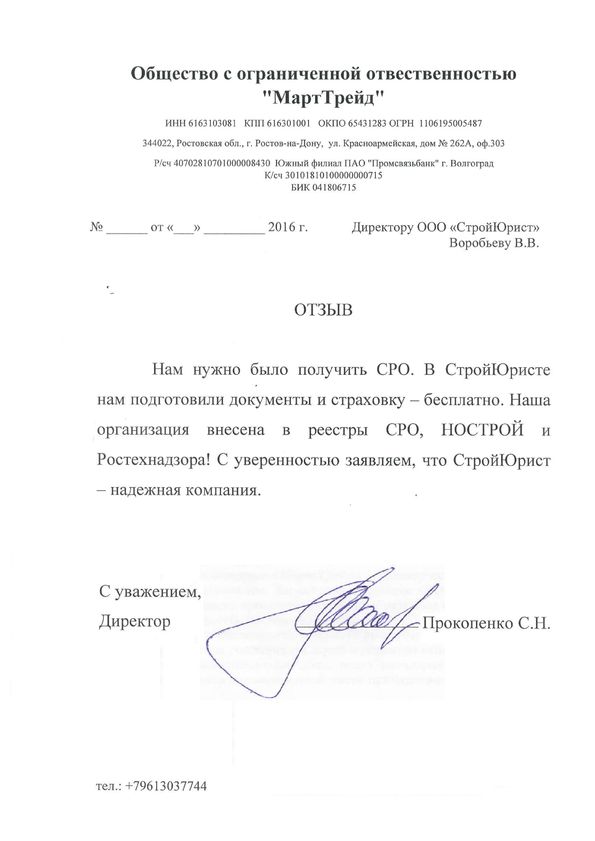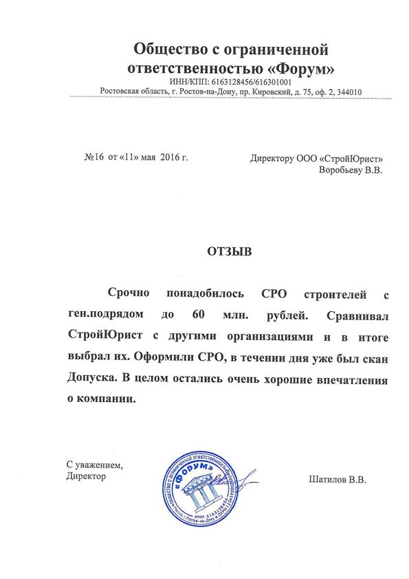 Отзывы клиентов "СтройЮрист" по вступлению в СРО в Пскове
