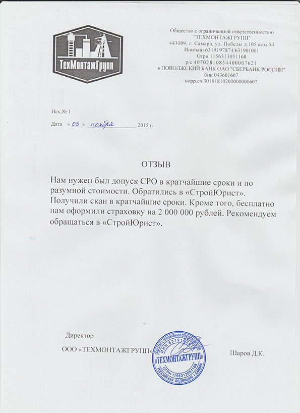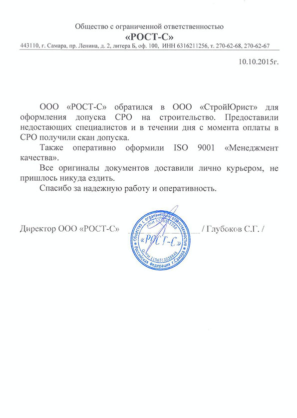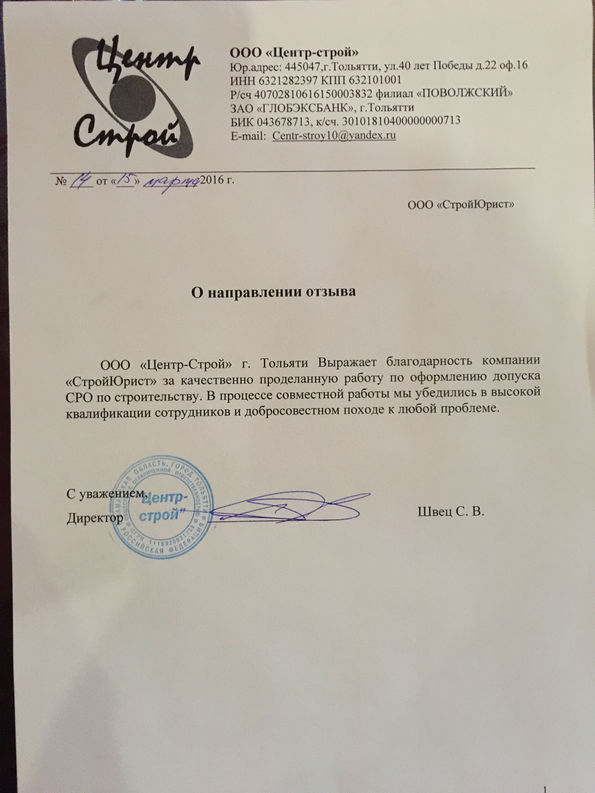 Отзывы клиентов "СтройЮрист" по вступлению в СРО в Пскове