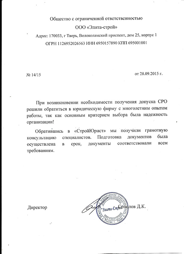 Отзывы клиентов "СтройЮрист" по вступлению в СРО в Пскове