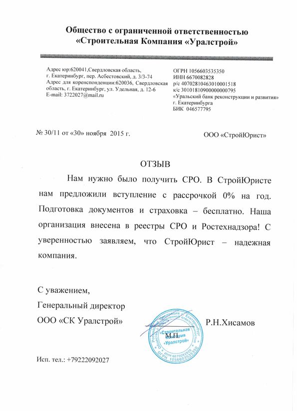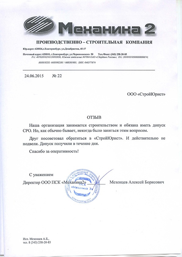 Отзывы клиентов "СтройЮрист" по вступлению в СРО в Пскове