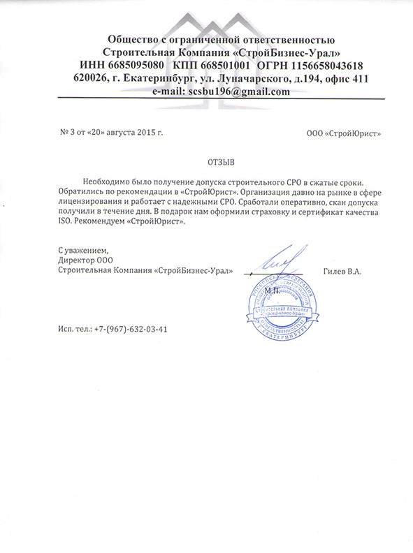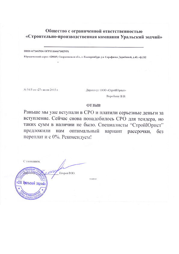 Отзывы клиентов "СтройЮрист" по вступлению в СРО в Пскове