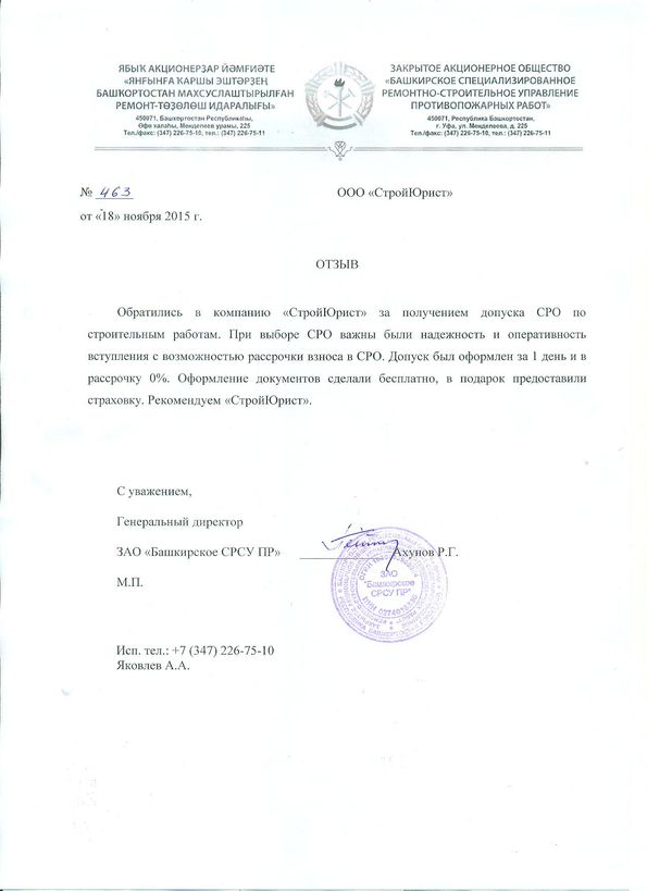 Отзывы клиентов "СтройЮрист" по вступлению в СРО в Пскове