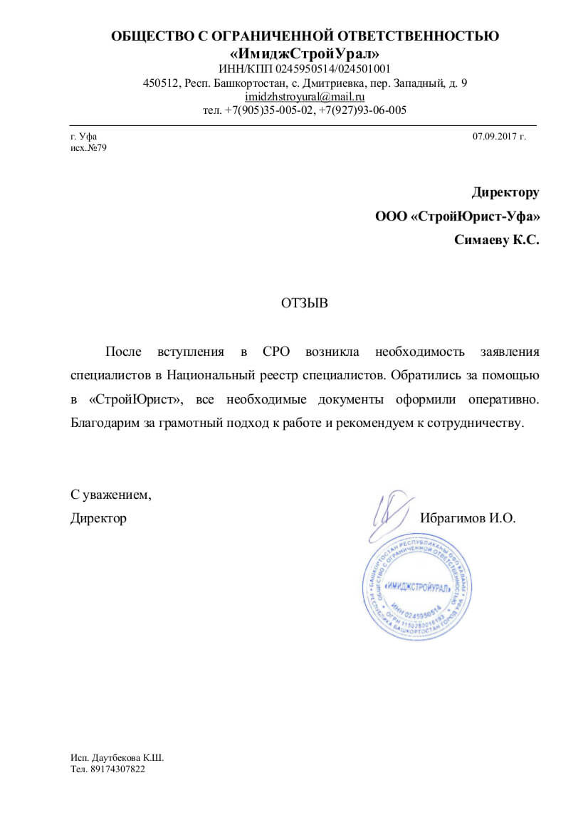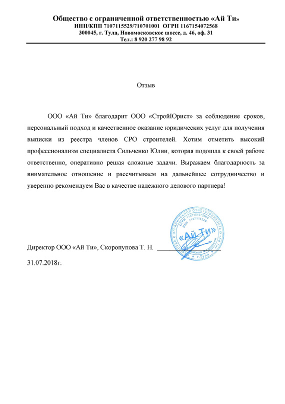 Отзывы клиентов "СтройЮрист" по вступлению в СРО в Пскове